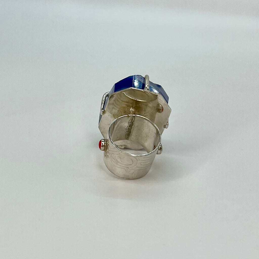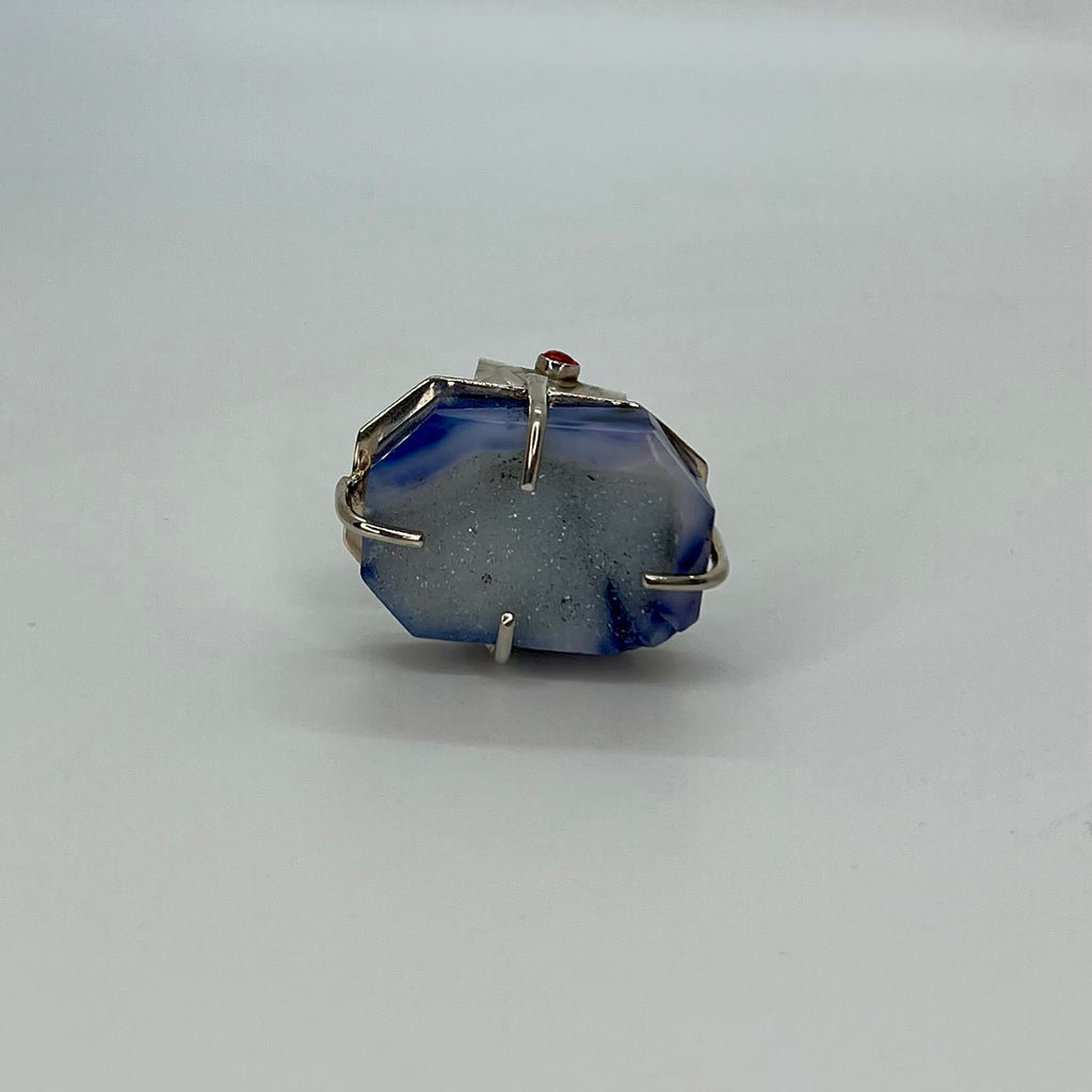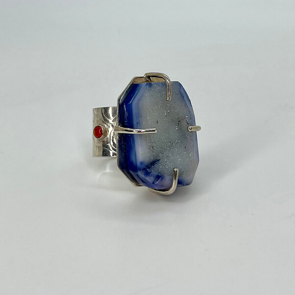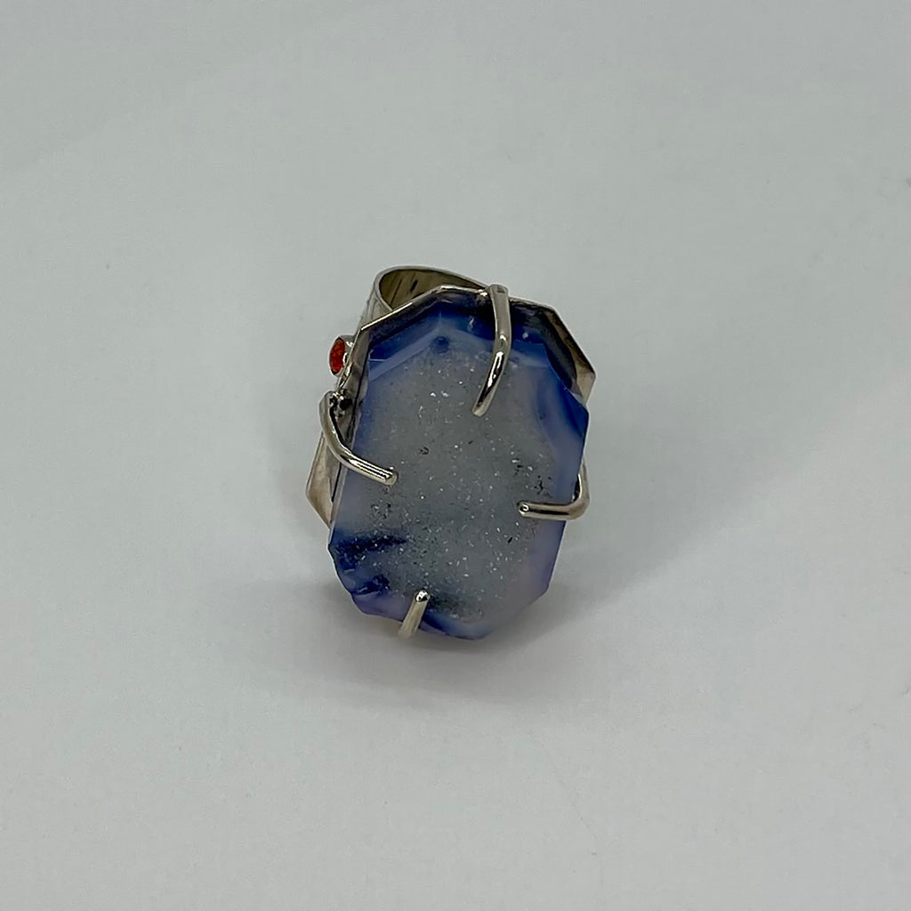 Blue Drusy Agate Fire Opal Sterling Silver Statement Ring