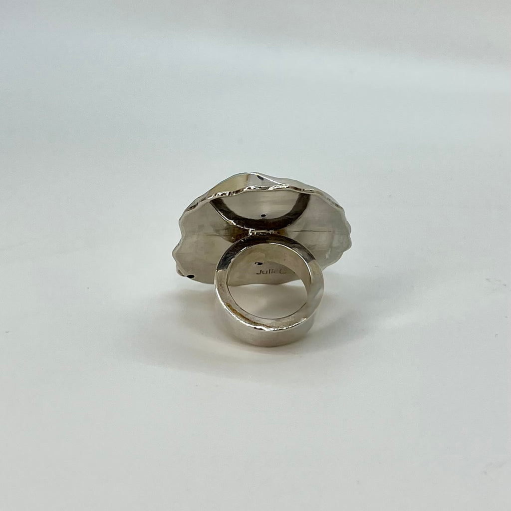 Blue Lace Agate Rainbow Moonstone Sterling Silver Statement Ring
