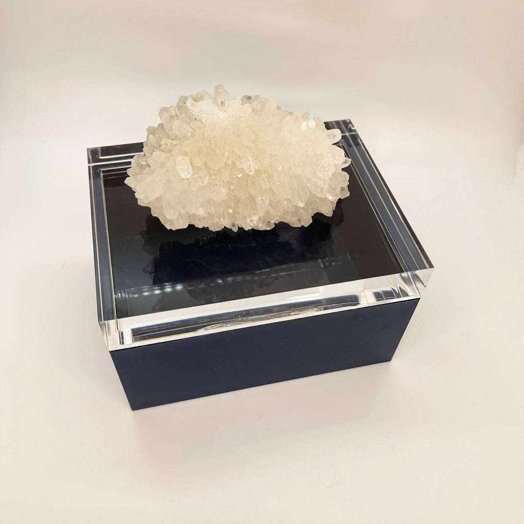 Navy and Clear Acrylic Box with White Multi-Point Quartz Crystal