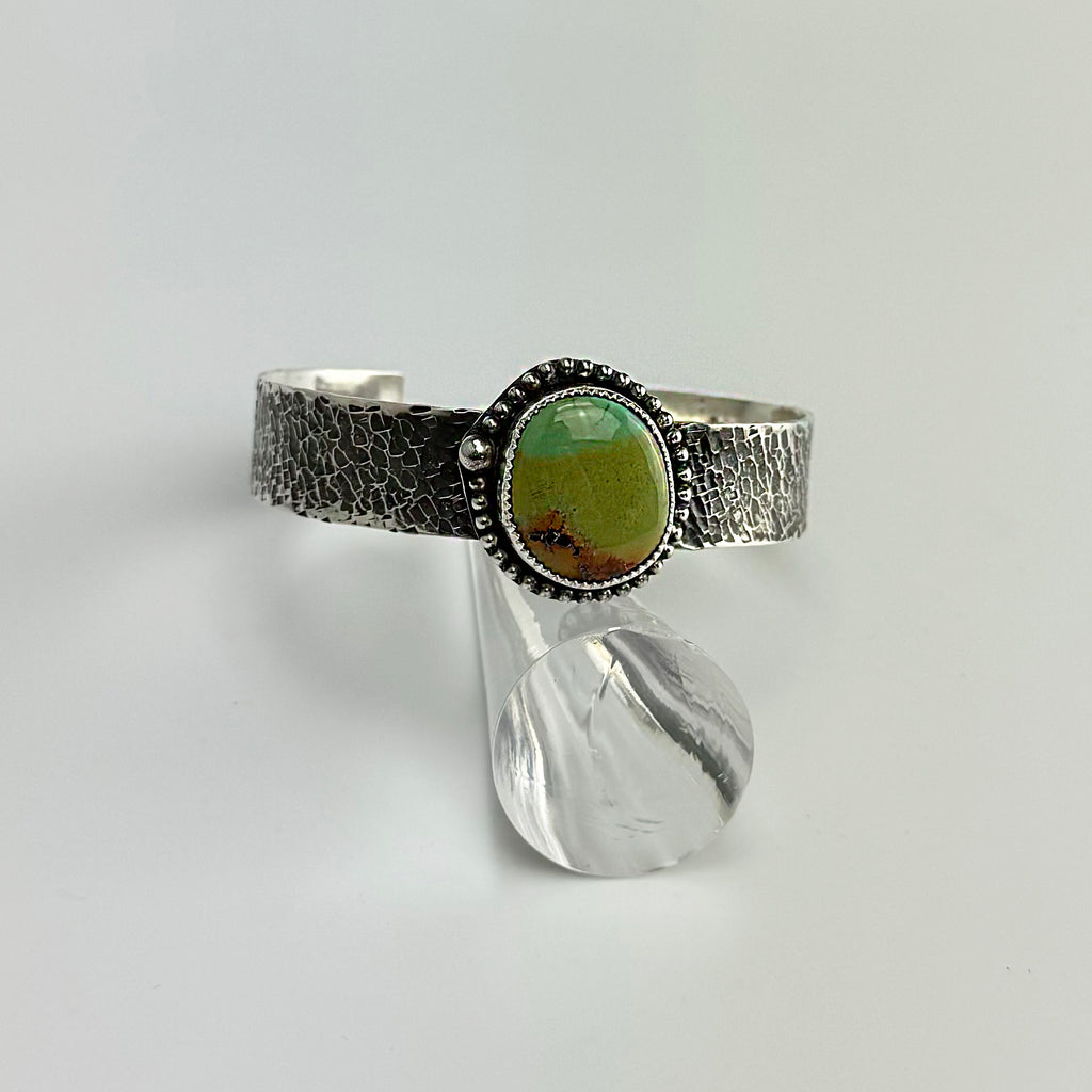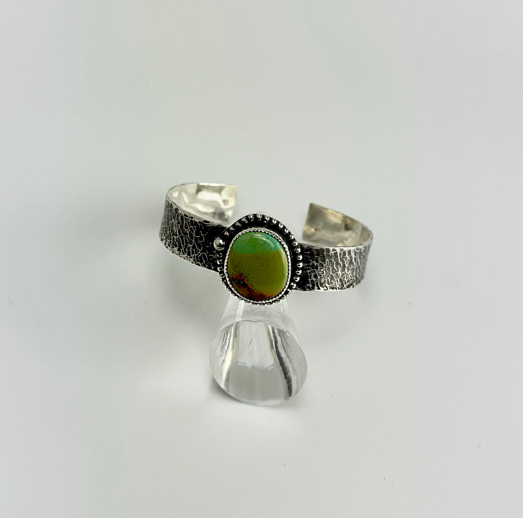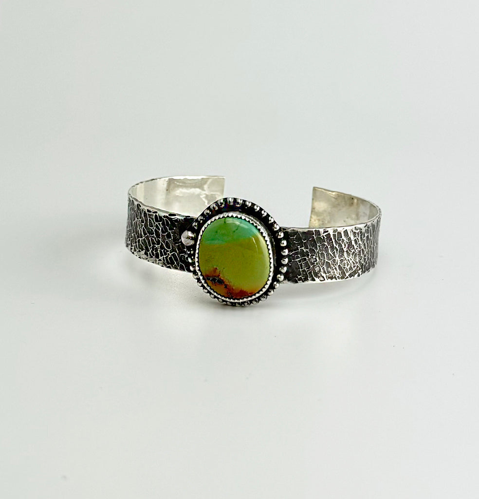 Black Jack Turquoise Sterling Silver Texture Cuff Bracelet