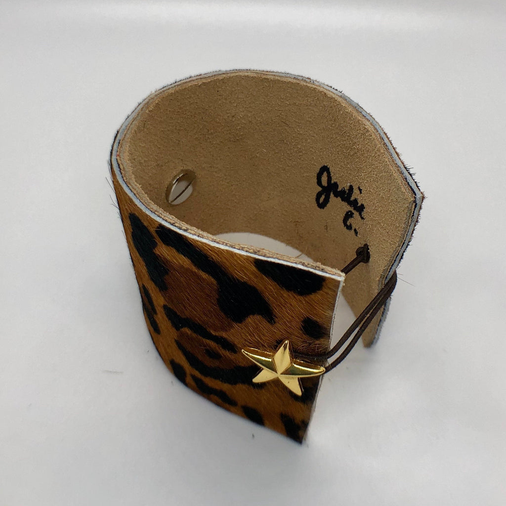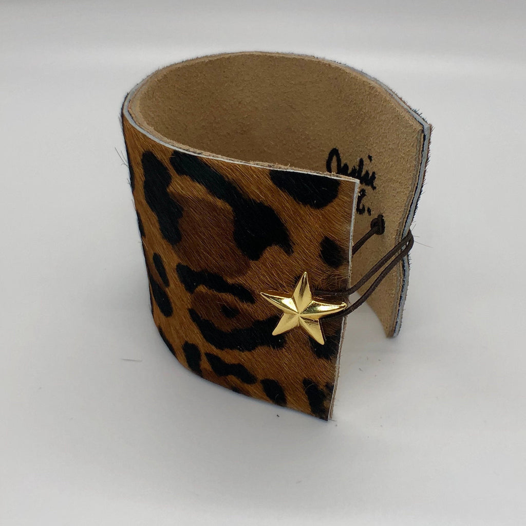 Brazilian Hide Leopard Print Fur 12g Shotgun Shell Cuff with Brass Star Closure
