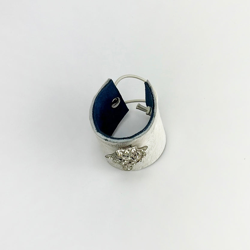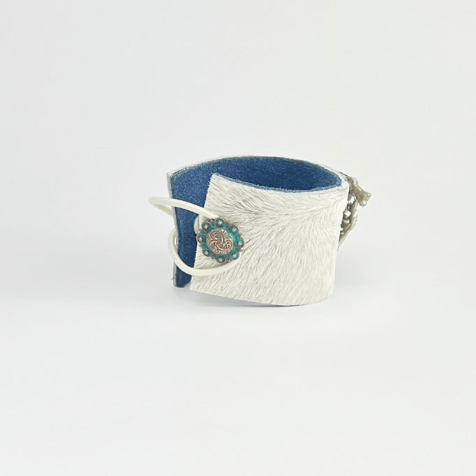 Antique CZ Shoe Buckle on Brazilian Fur and Leather Bracelet Cuff