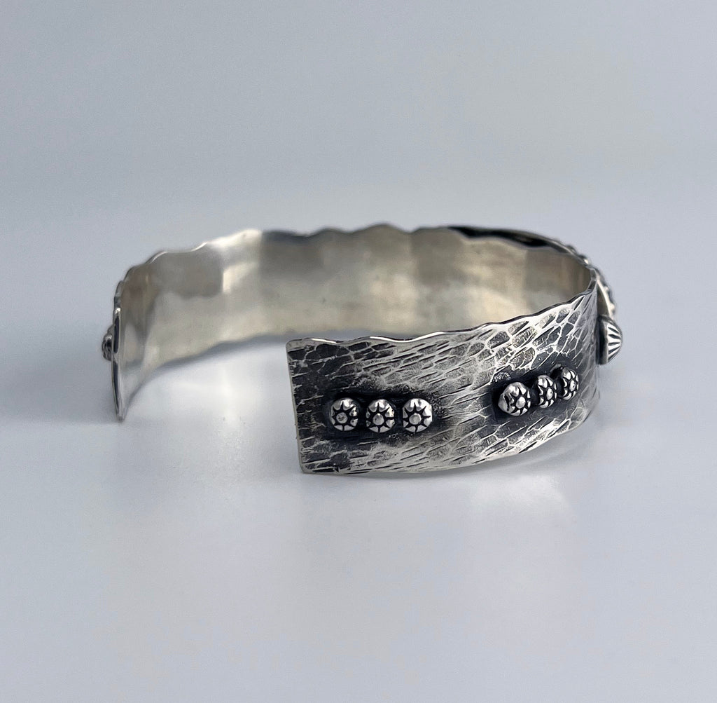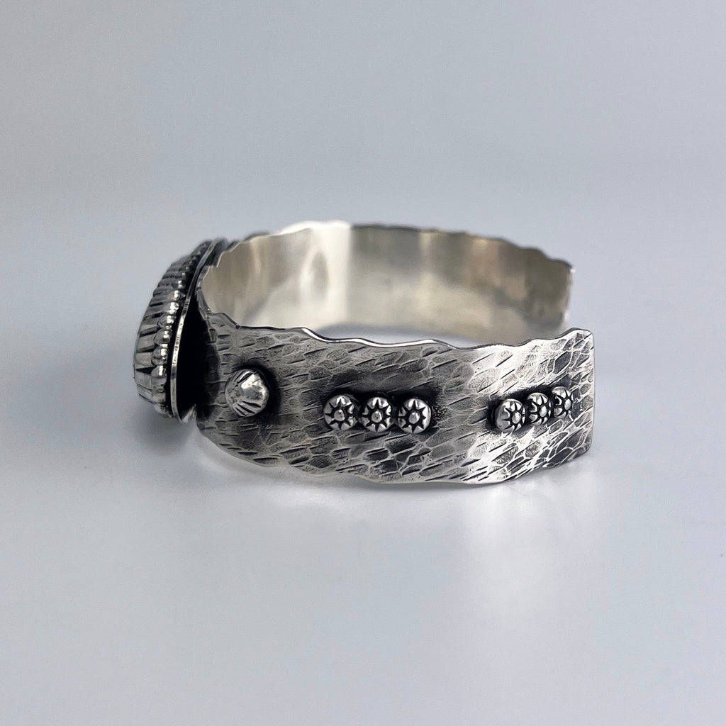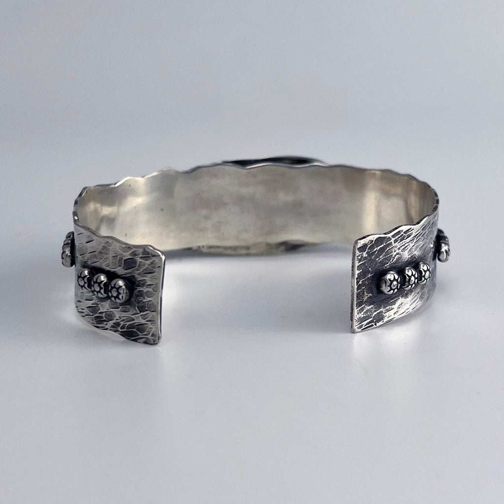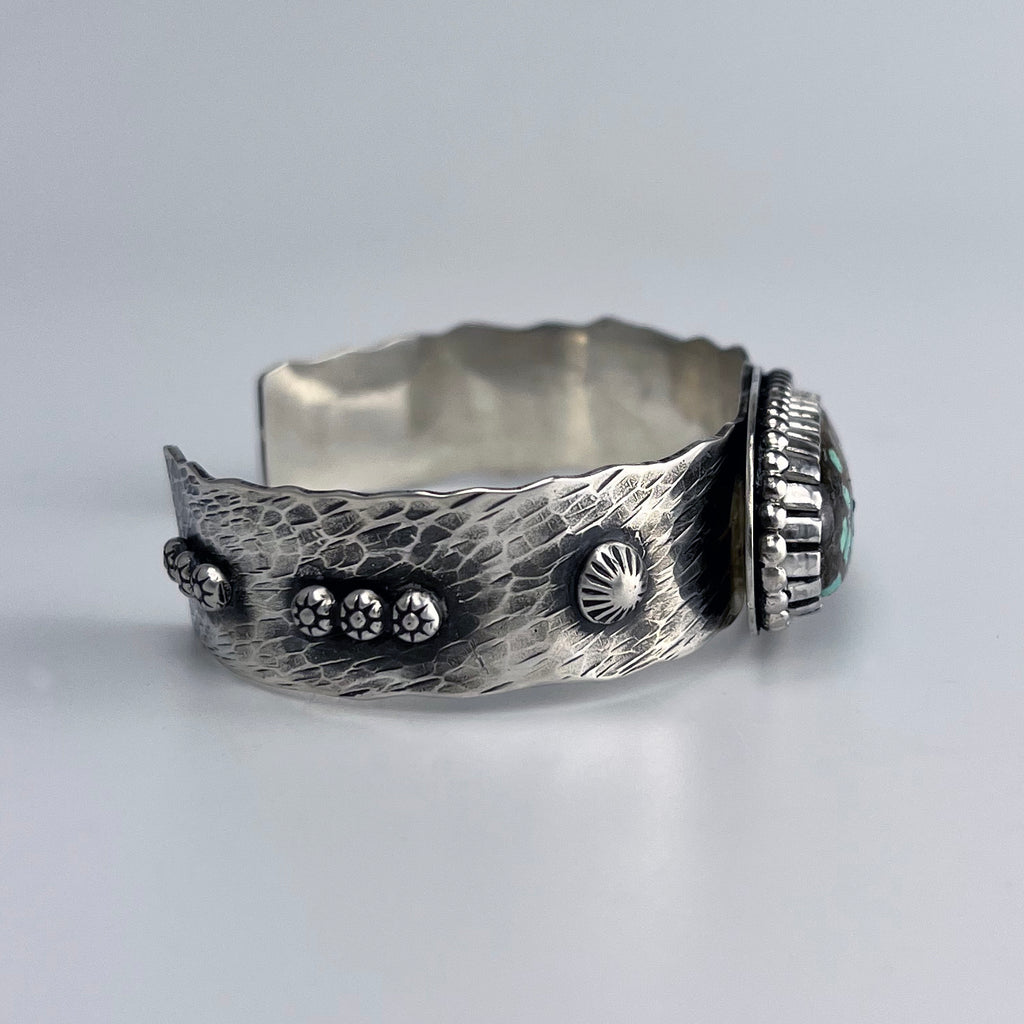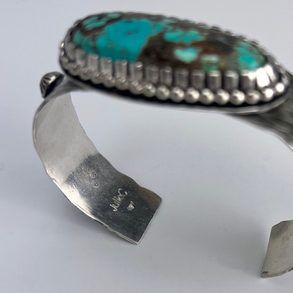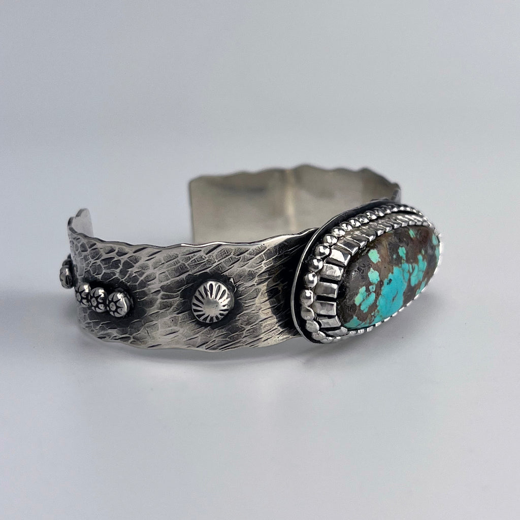 Sterling Silver Cuff Bracelet with No 8 Turquoise set in a Castellated Bezel