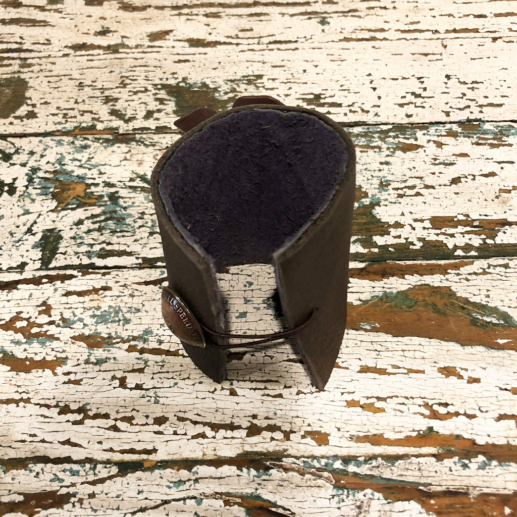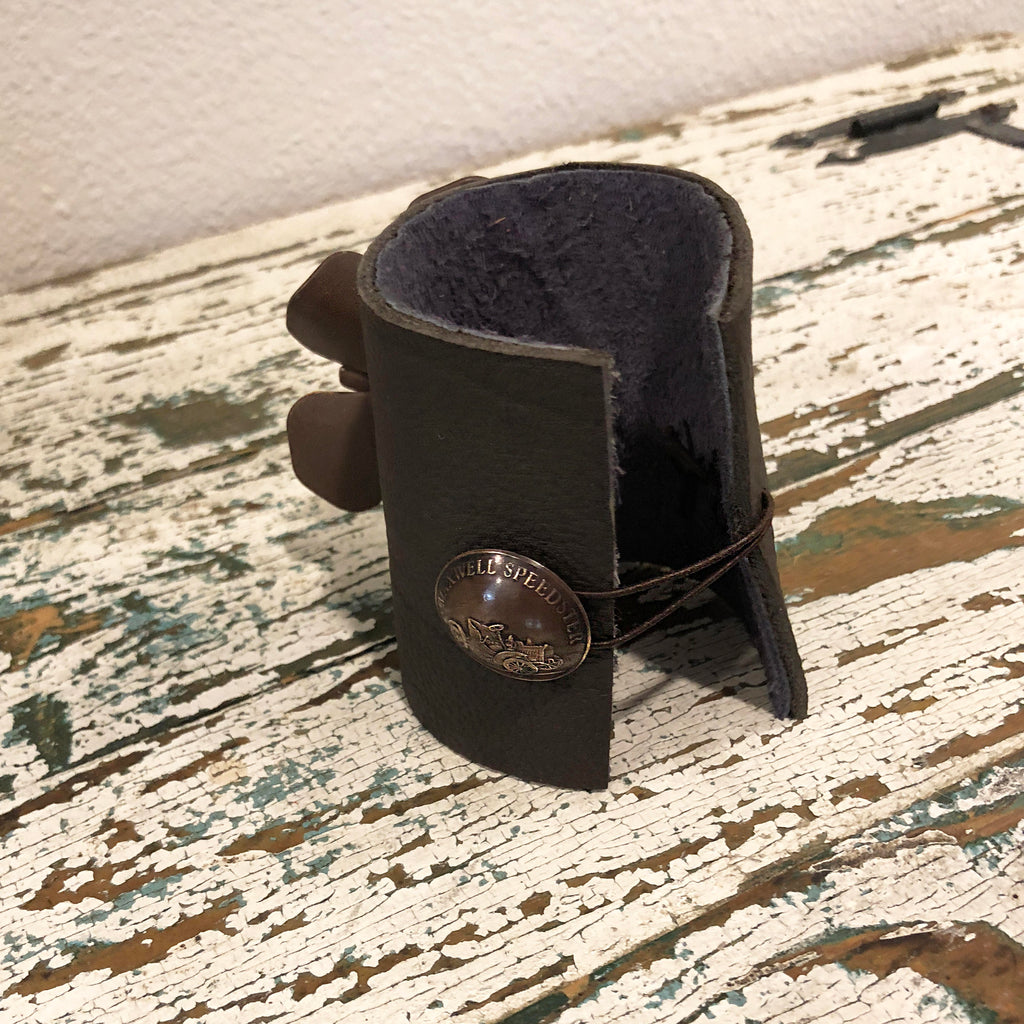 This fun hand-made leather cuff will help shake off the Winter blues and take you from Spring on into Summer in style. The cuff is a wide 3" by 6.5" and has an adjustable elastic closure. This unique closure is a vintage brass concho dated 1906 with Maxwell Speedster Company name and a "speedster" on it. This cuff is easy to wear and should brighten any day.