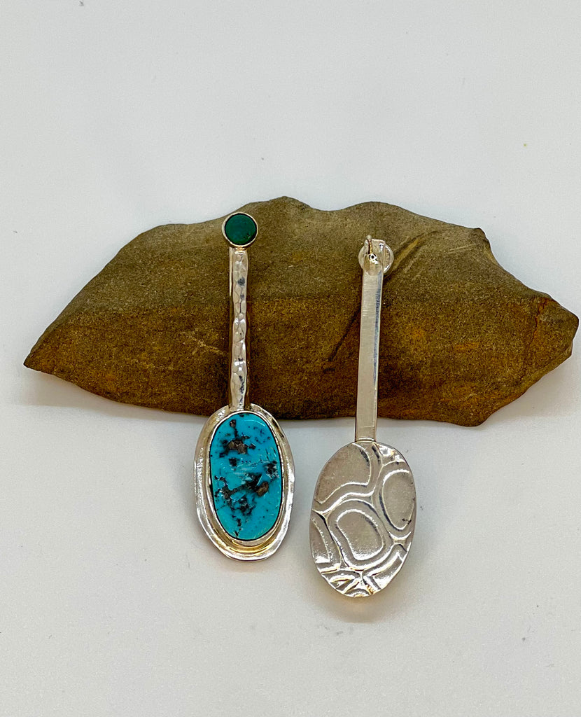 Green and Blue Stone Turquoise Sterling Silver Earrings