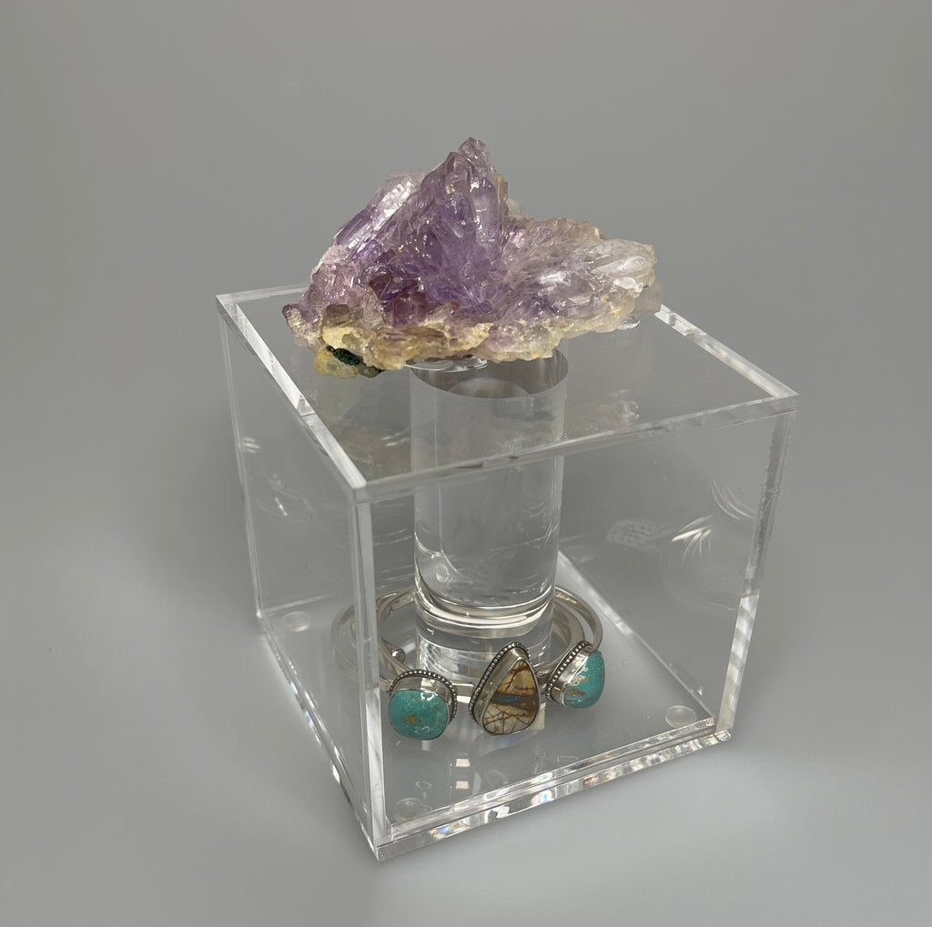 Beautiful large, Amethyst Flower Crystal from Brazil adorns a functional clear acrylic bracelet box.