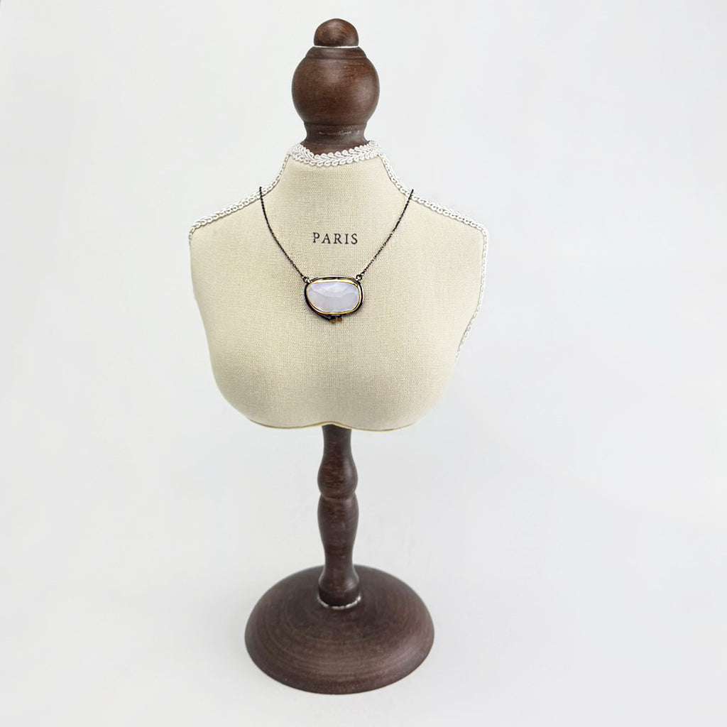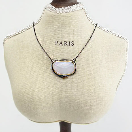 Milky Agate set in a Gold Filled Bezel, and Twig Like Design with Accents of Flattened Gold Filled Balls