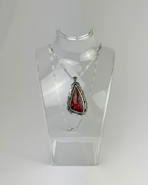 Ammonite Drusy and Red Garnet Pendant- Handmade