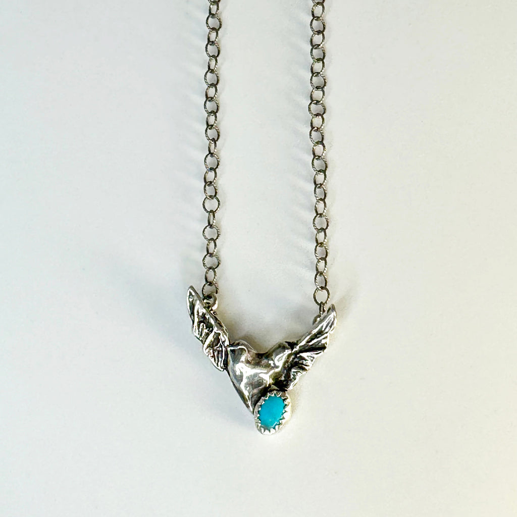 Flying Heart Sleeping Beauty Turquoise Sterling Silver Pendant