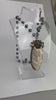The bezel is beautifully stamped on the back. The stainless steel chain is 24" and has a simple sterling silver lobster clasp.