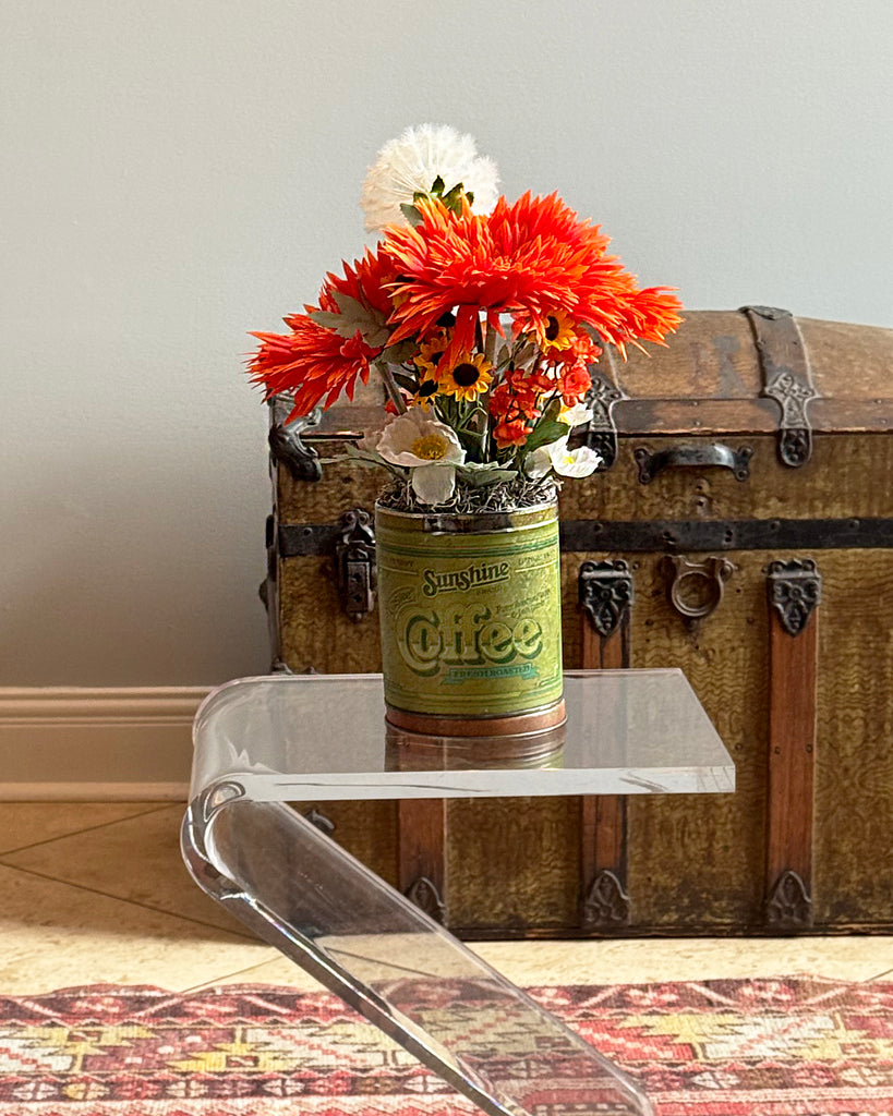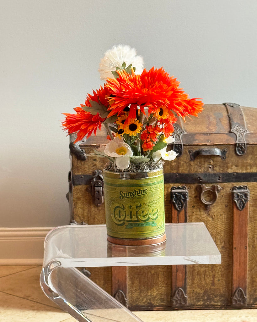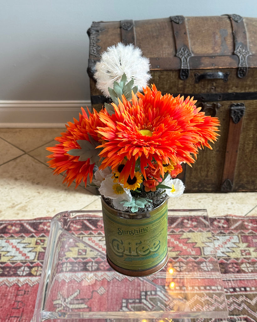 Winter Daisey's Sunshine Brand Coffee Tin Floral Arrangement