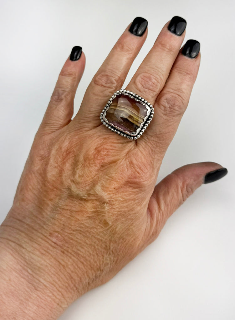 Rhodochrosite Capillitite (34.65ct) Wider Band Sterling Silver Statement Ring