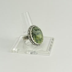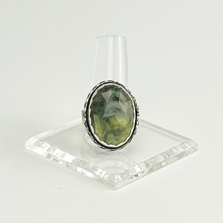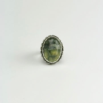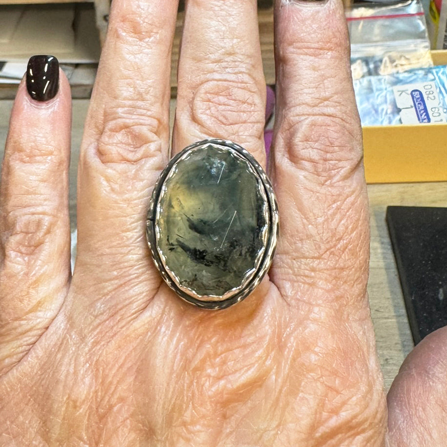 Rutilated Green Prehnite Sterling Silver Statement Ring