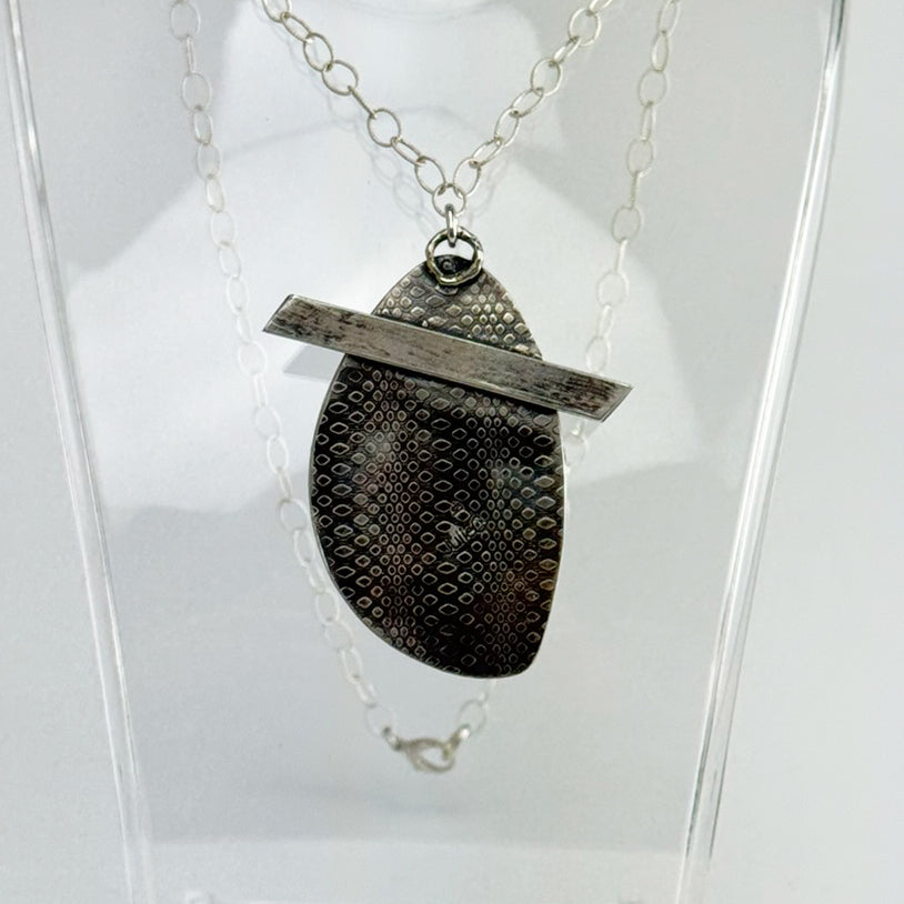 Approximately, 2.75" x 2". 22' Sterling Silver chain.