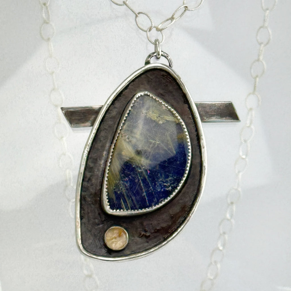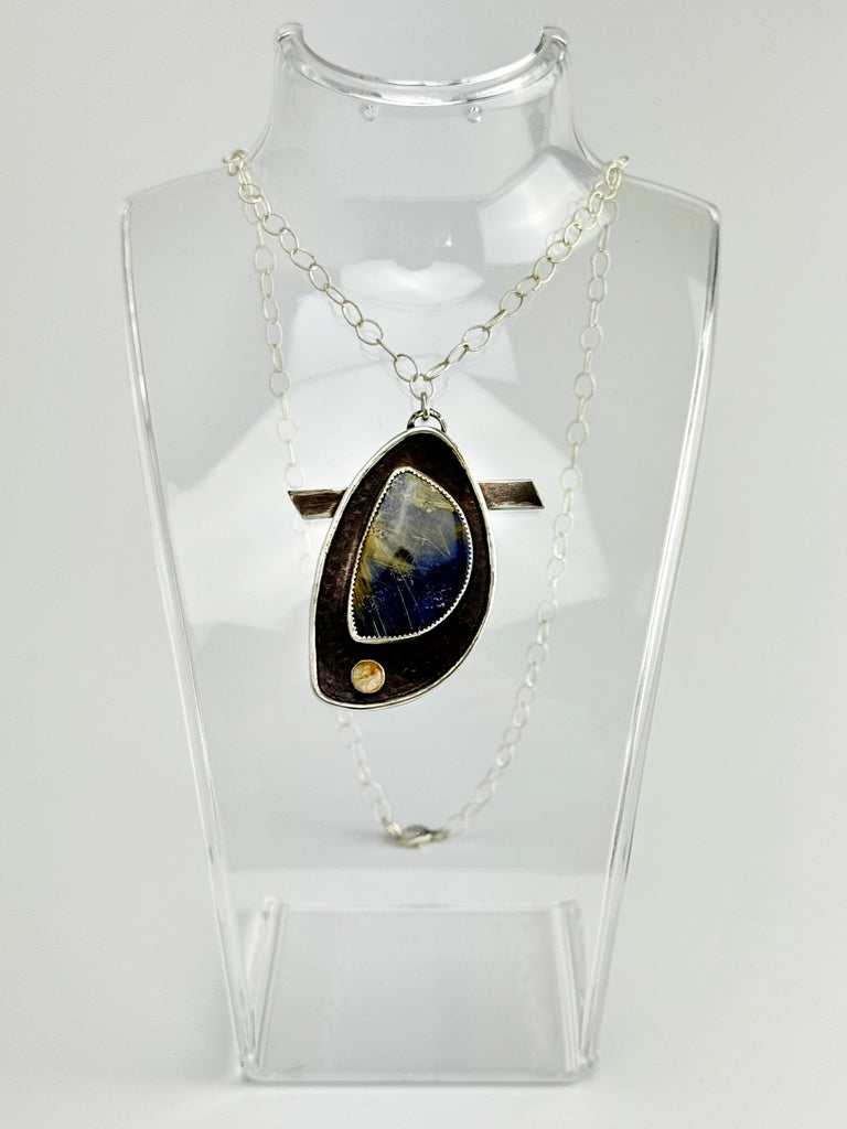 Rutilated Lapis Lazuli, 6mm Rutilated Quartz, Sterling Silver Pendant Necklace