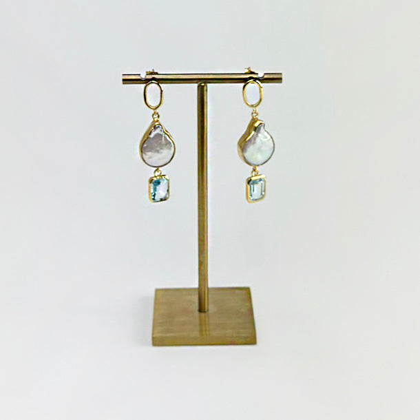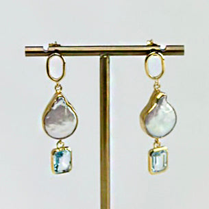 Elevate your everyday outfit with our Gold Filled over Sterling Silver, Freshwater Pearl and Blue Topaz Drops. The delicate gold-filled posts add a touch of luxury while the sparkling blue topaz and lustrous pearl bring elegance. Perfect for any occasion, these drops are sure to turn heads.