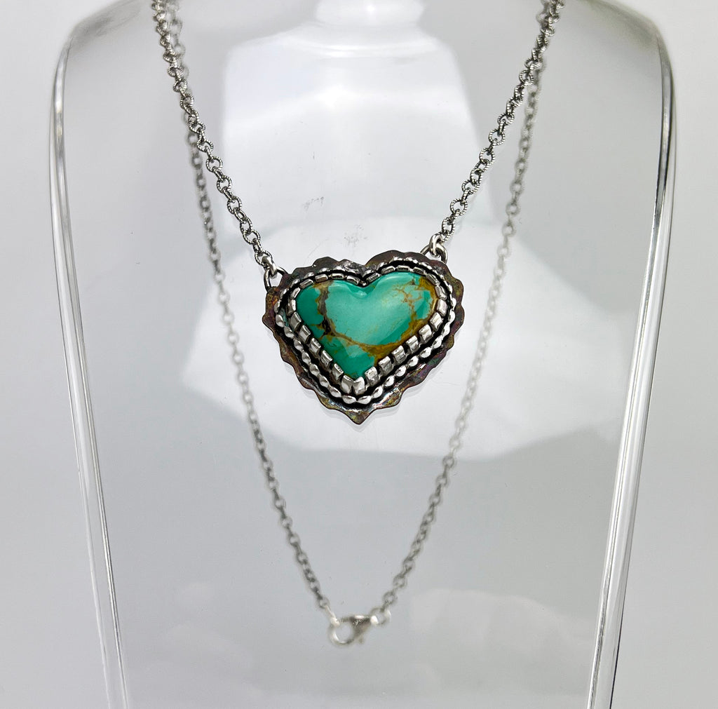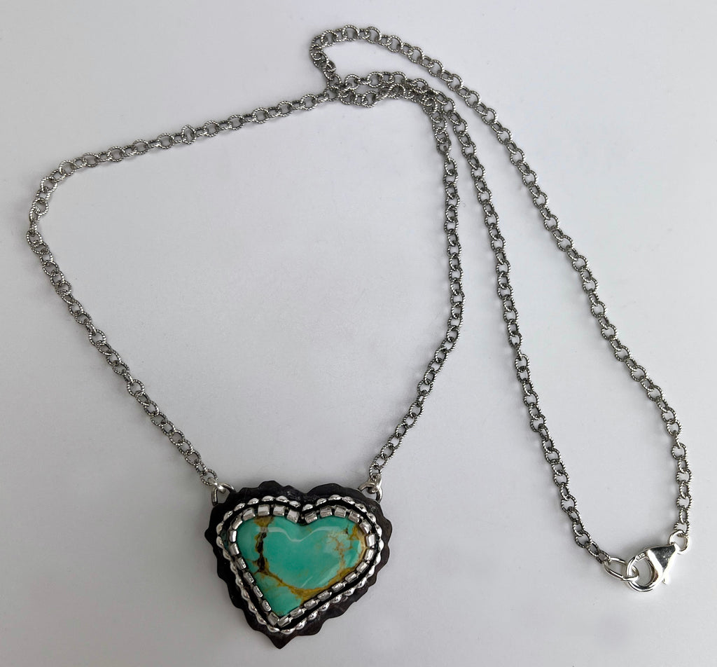 Natural Tyrone Turquoise (15.9ct) Sterling Silver Heart Necklace with a 20 inch Decorative Chain