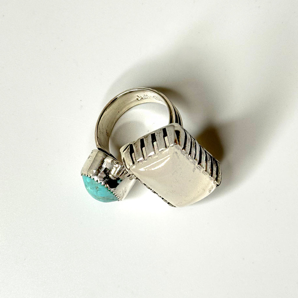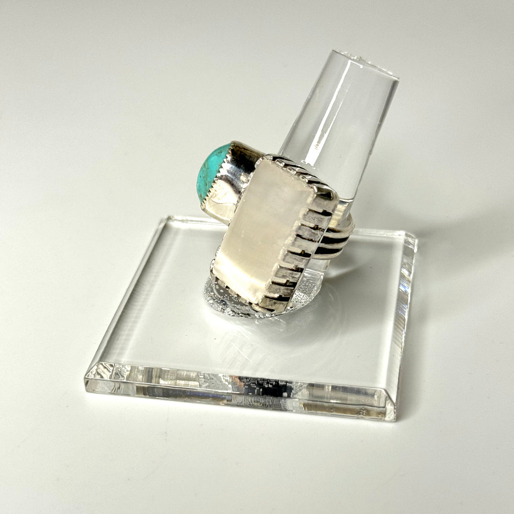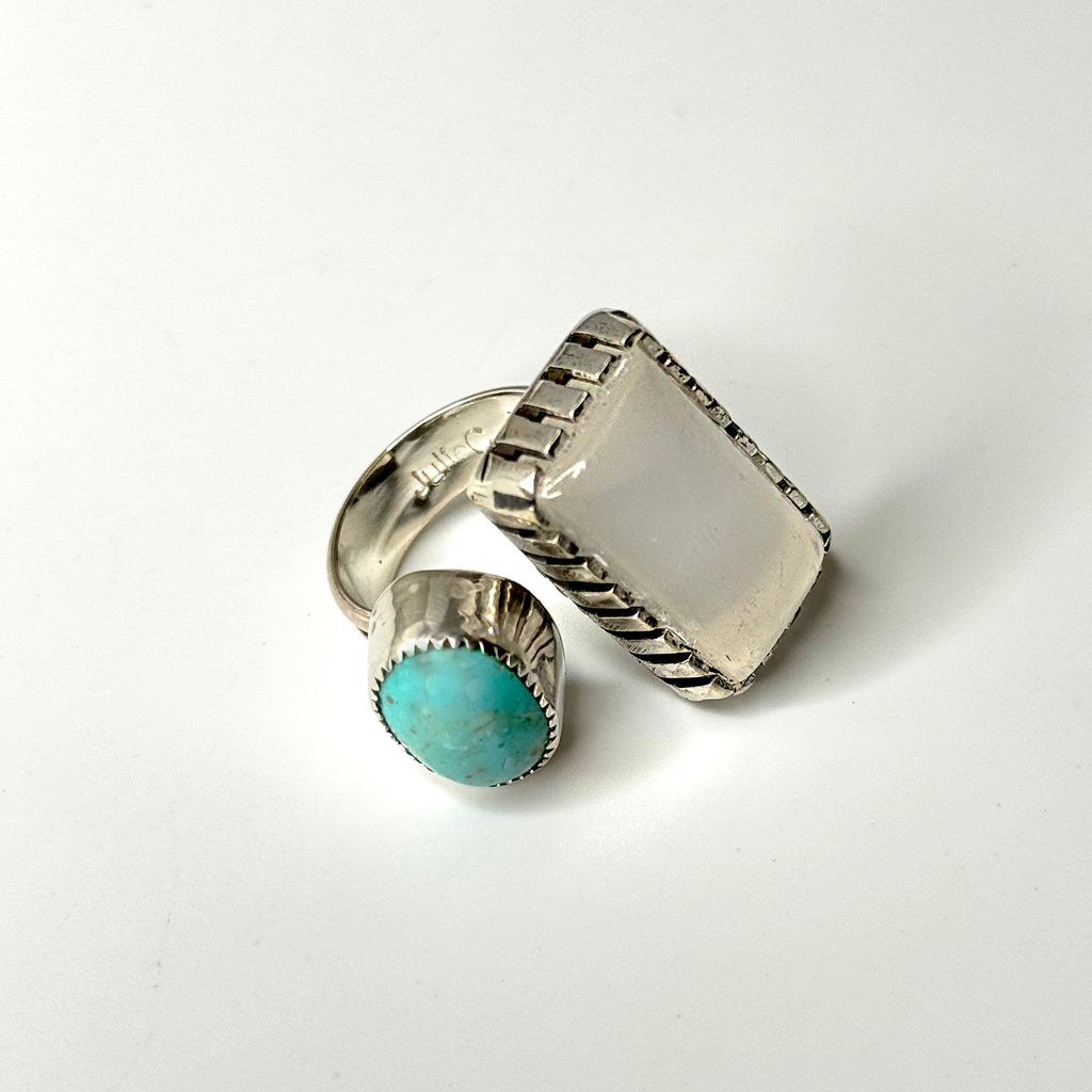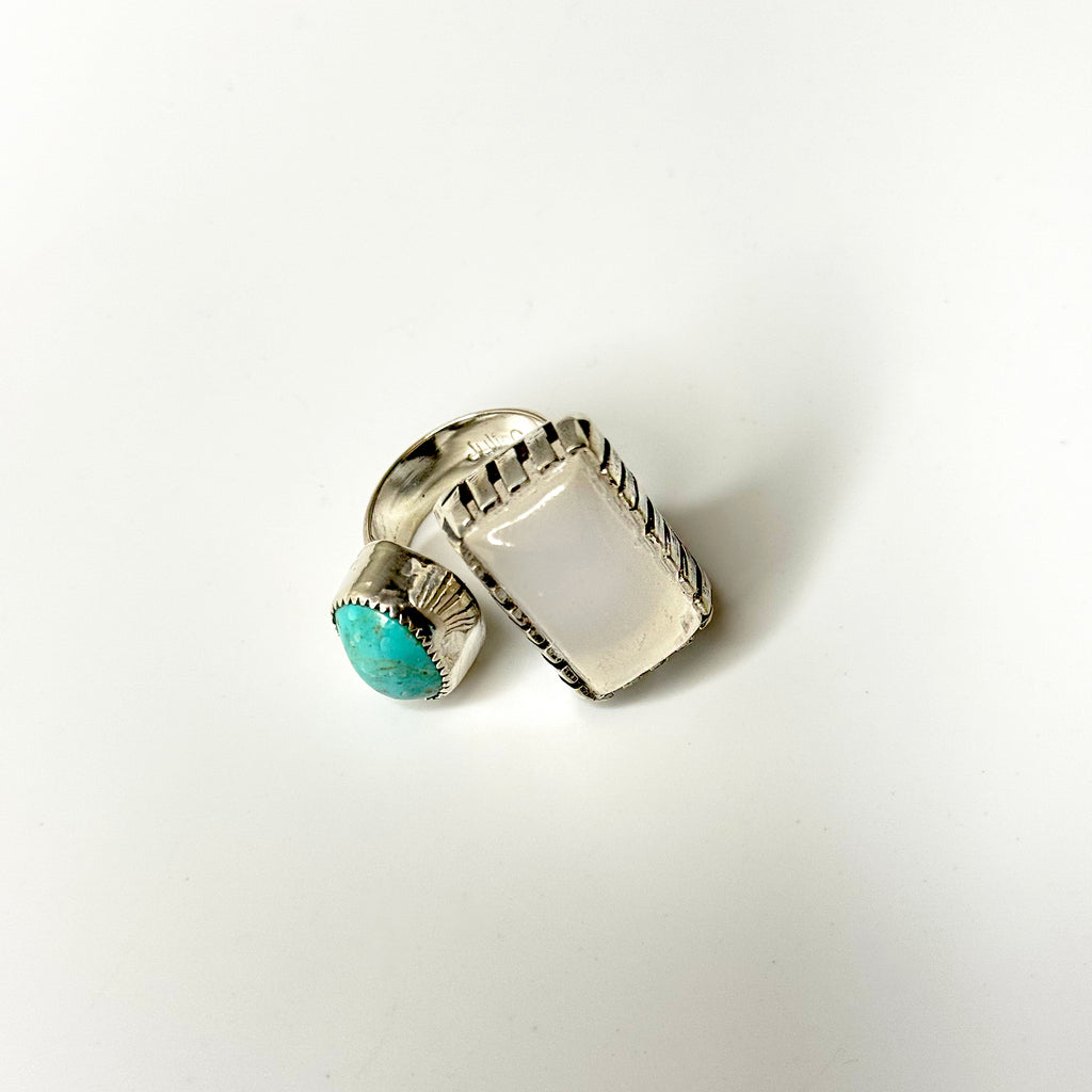 Selenite and Turquoise Mountain Sterling Silver Two-Stone Ring
