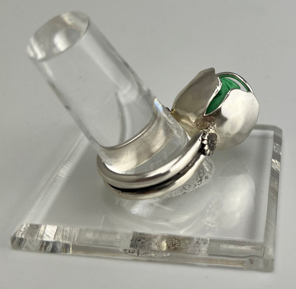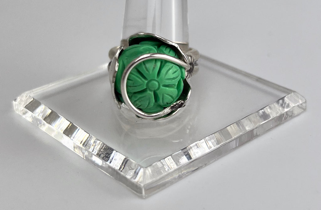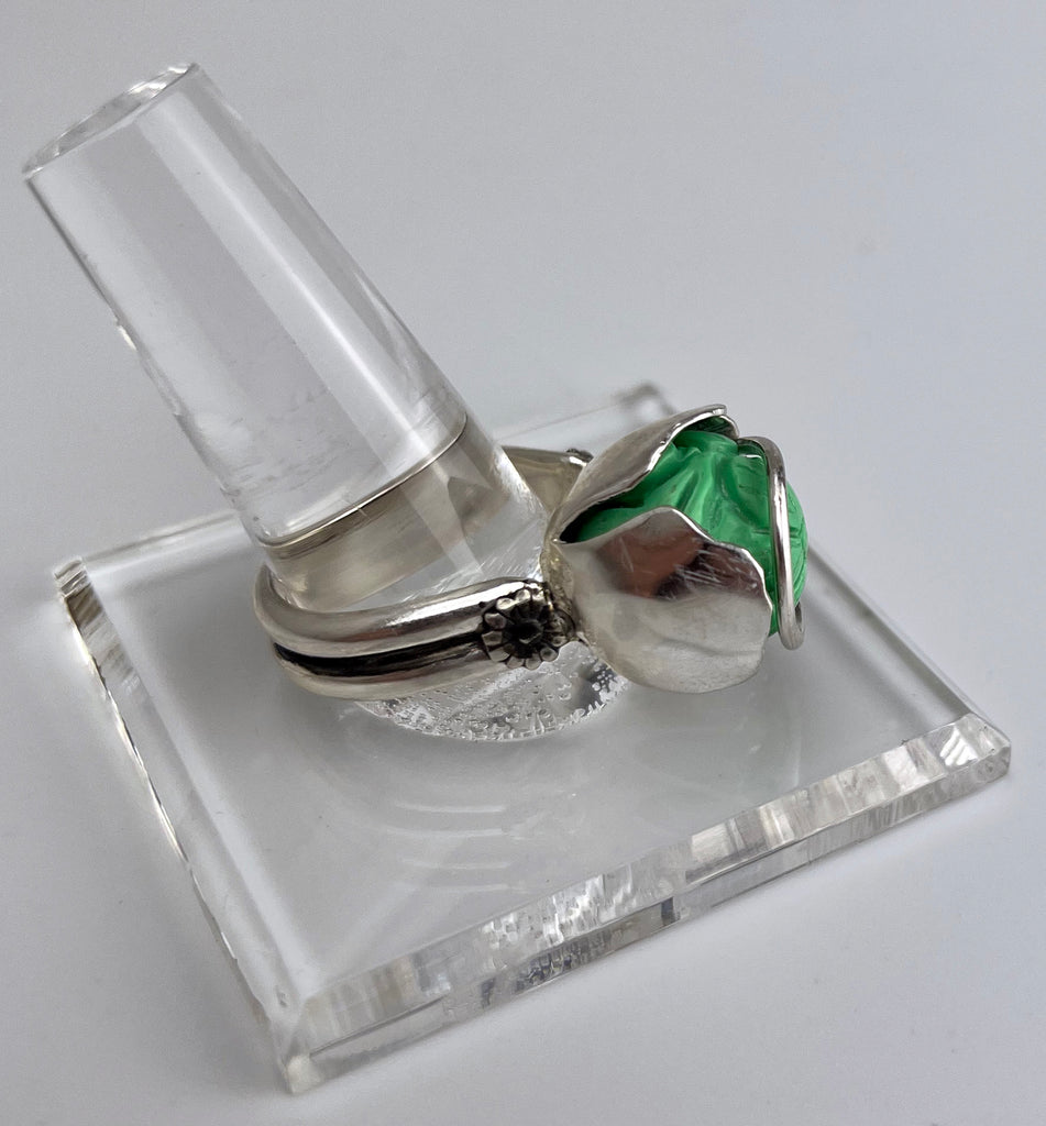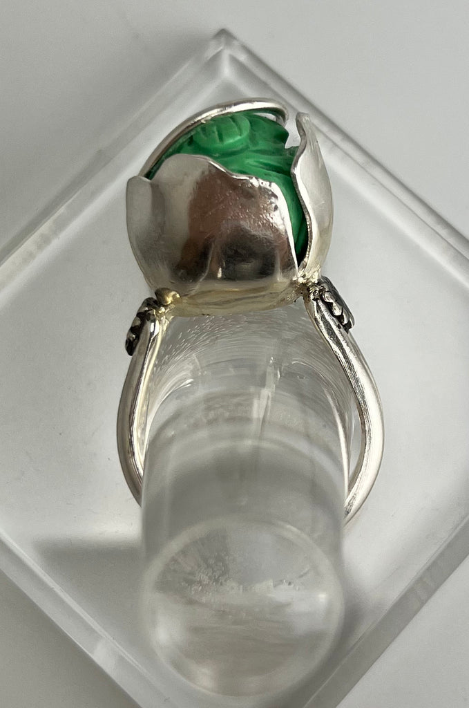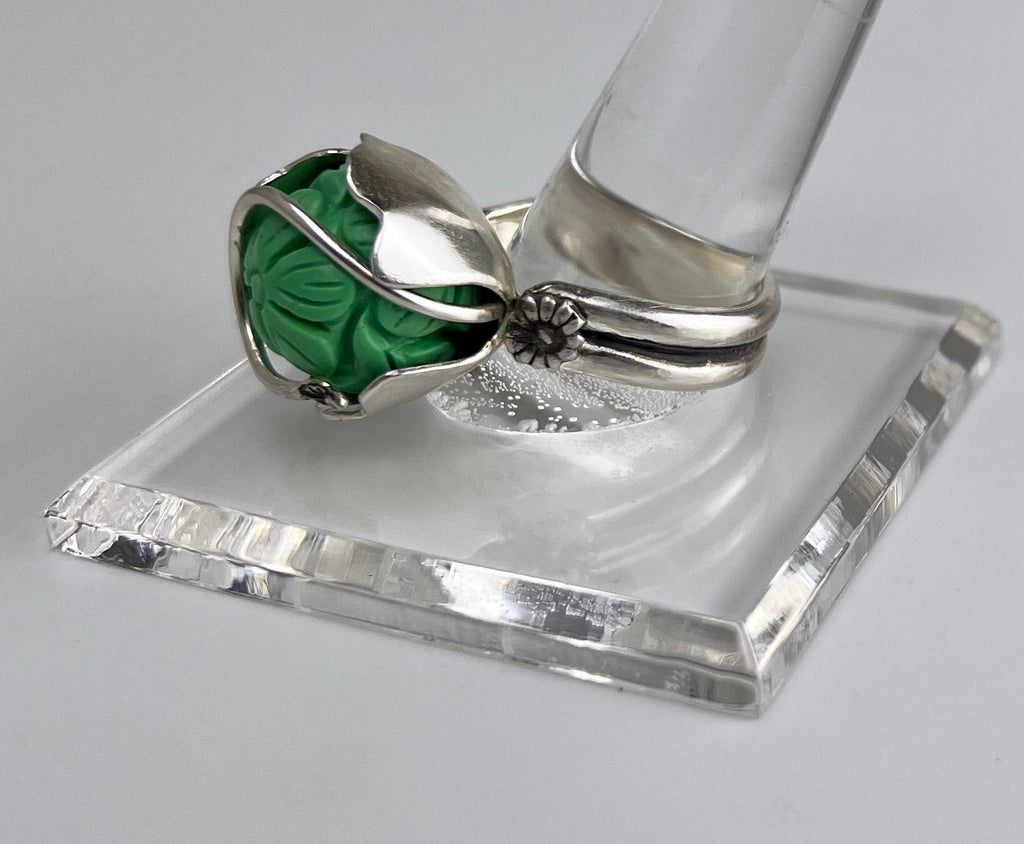 Carved Turquoise Tulip Ring set in Sterling Silver, Size 8 3/4