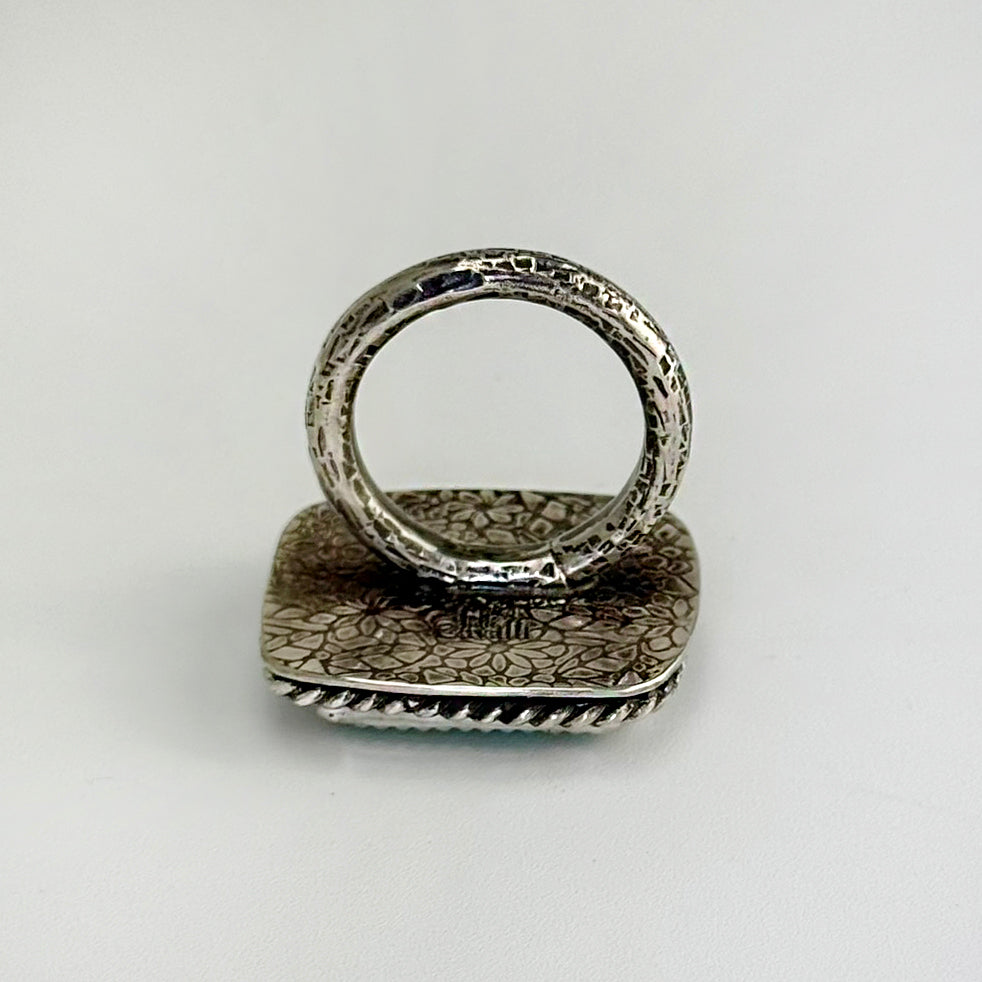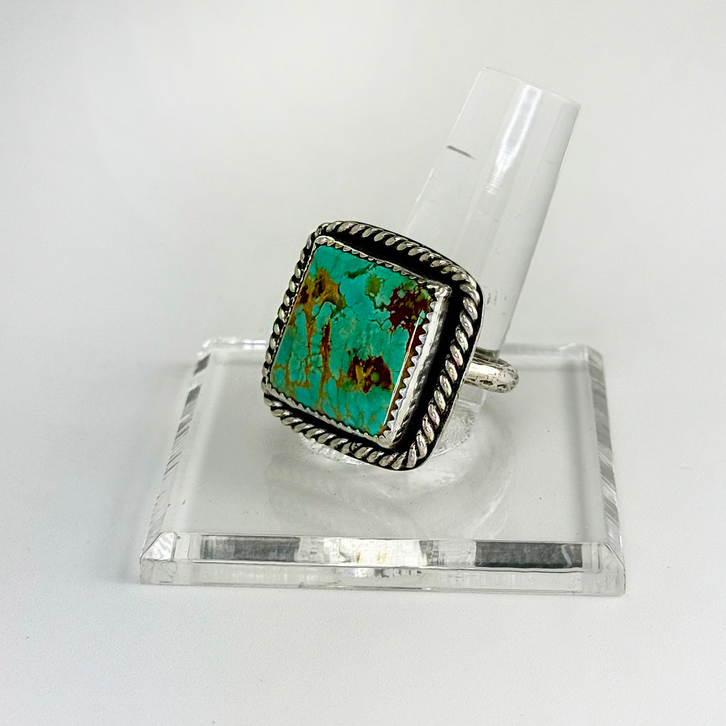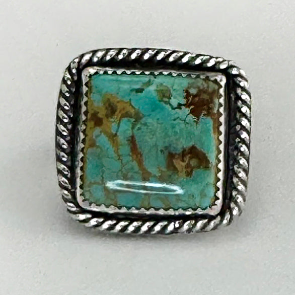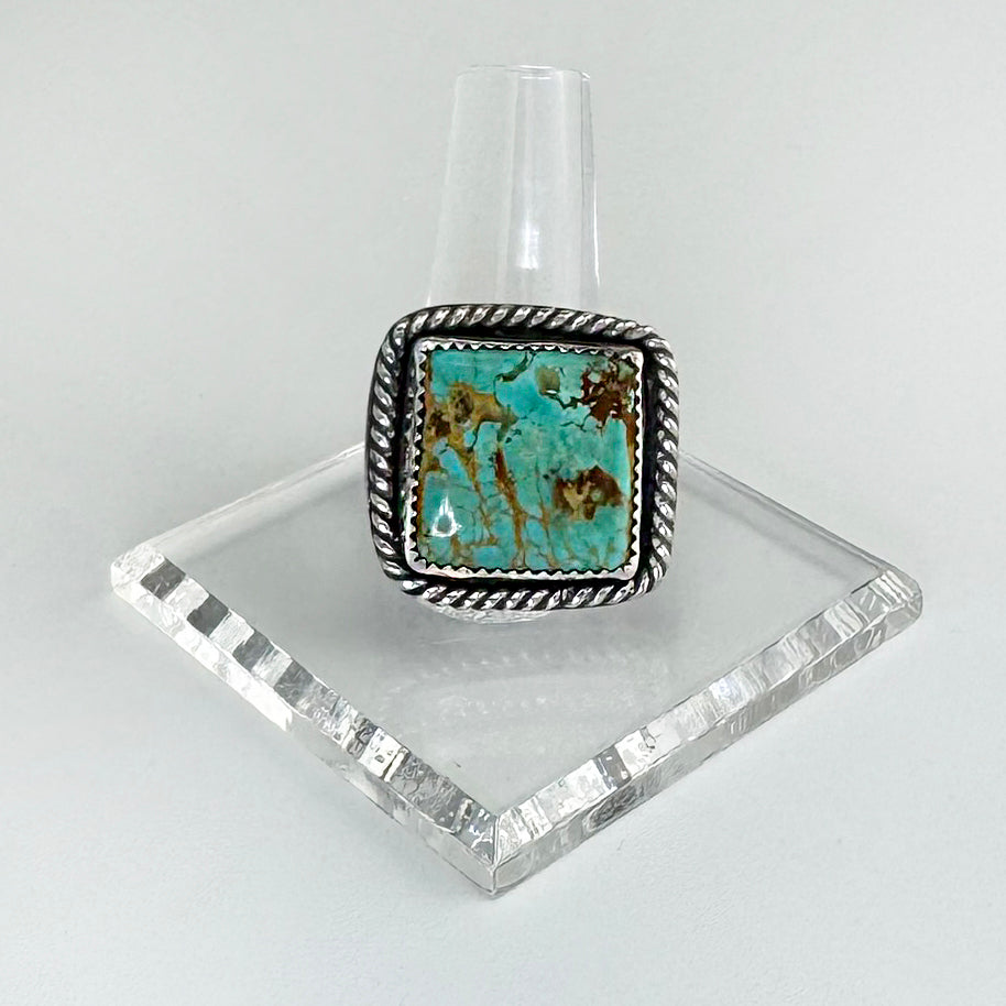 Natural Tyrone Square Sterling Silver Twisted Rope Accent Ring, Size 7.5
