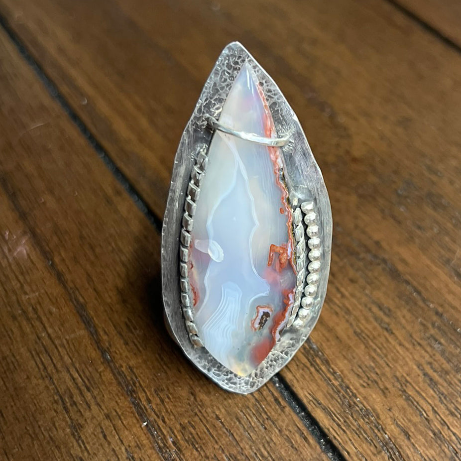 Teardrop Moroccan Agate and Sterling Silver Ring